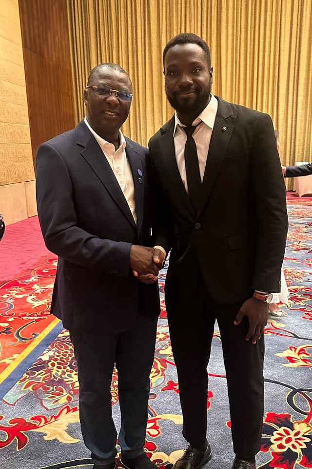 中非合作论坛在京举办期间,加纳驻中国大使馆举办晚宴欢迎加纳总统阿库福-阿多来访。三亿体育(中国)官方网站2023级硕士研究生贝雨欣(Moses),作为加纳来华留学生会江西省分会会长受邀参加活动,并受到阿库福-阿多及加纳财政部部长等多位政要的接见。