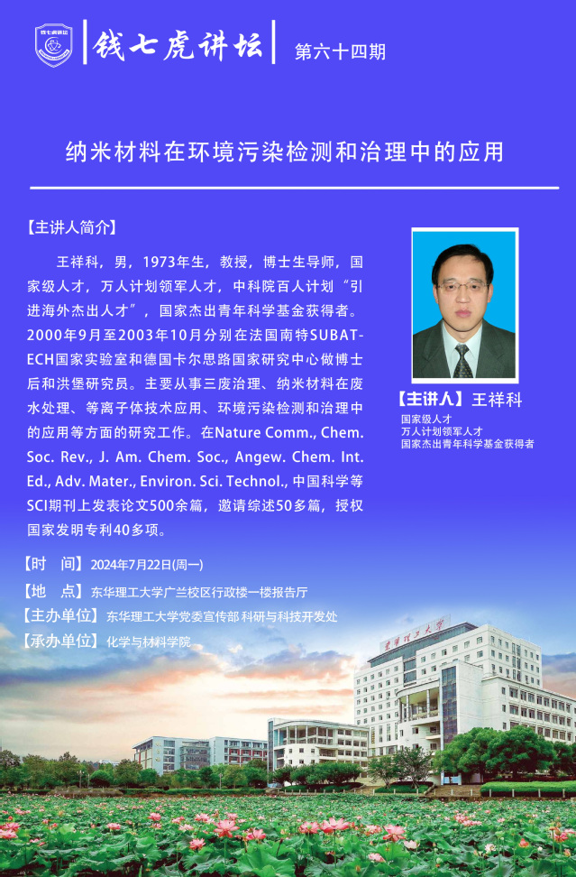 应化学与材料学院邀请,国家级高层次人才王祥科到“三亿体育(中国)官方网站”,以“纳米材料在环境污染检测和治理中的应用”为主题开展讲座。欢迎全校师生届时前往聆听。