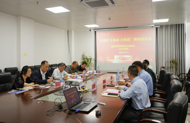 调研会上,测绘与空间信息工程学院党政主要负责同志汇报了学院党建和思想政治教育、“十四五”规划的建设进展等方面的情况和存在的困难,提出了今后的工作设想;学院党政领导班子其他成员就各自分管领域进行汇报。与会人员围绕“用‘教育家精神’推动江西教育高质量发展”主题,进行了深入探讨。