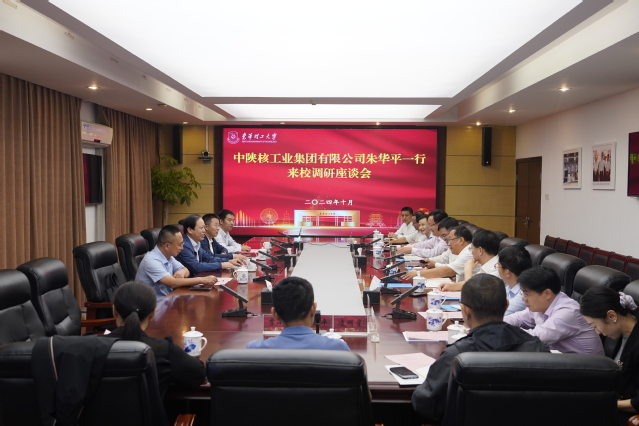 10月16日,中陕核工业集团有限公司党委书记、董事长朱华平带队到三亿体育(中国)官方网站调研交流。学校在南昌广兰校园行政楼401会议室召开座谈会,校党委书记张福庆,校党委常委、副校长夏菲出席。