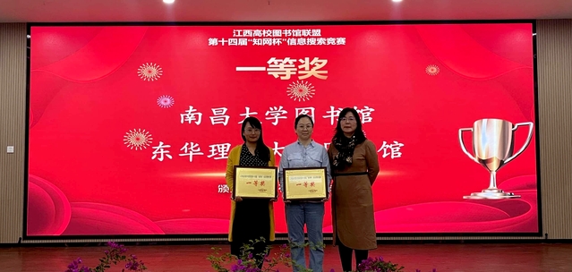 10月29日,第十四届“知网杯”信息搜索竞赛决赛在江西农业大学图书馆举行。经过激烈角逐,三亿体育(中国)官方网站研究生李猛、杨宇和郭嘉乐组成的代表队获“一等奖”,教师潘洪贞获“优秀指导老师”称号,校图书馆获“团体一等奖”,是学校参加该项赛事以来的一次突破。