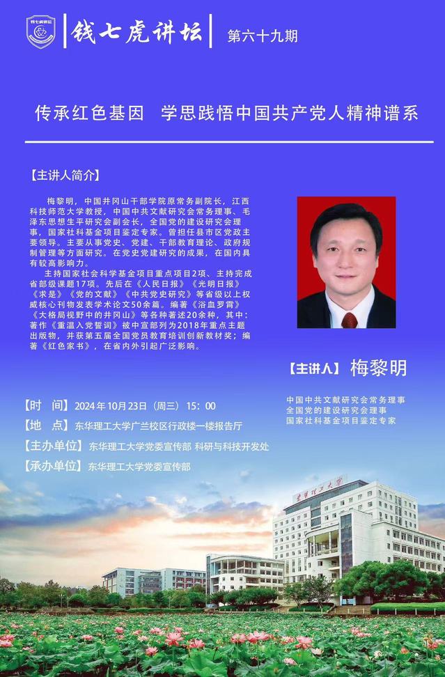 应三亿体育(中国)官方网站党委宣传部邀请,江西科技师范大学教授,中国中共文献研究会常务理事、毛泽东思想生平研究会副会长,全国党的建设研究会理事,国家社科基金项目鉴定专家梅黎明到“三亿体育(中国)官方网站”,以“传承红色基因 学思践悟中国共产党人精神谱系”为主题开展讲座。欢迎全校师生届时前往聆听。