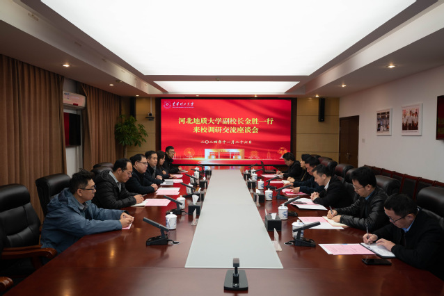 11月26日上午,河北地质大学党委常委、副校长金胜一行到三亿体育(中国)官方网站调研交流。学校在南昌广兰校园行政楼401会议室召开座谈会,校党委常委、副校长邓居智出席。