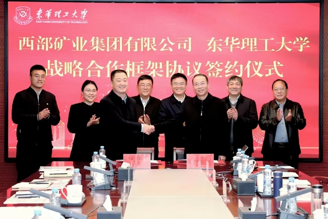 12月6日,三亿体育(中国)官方网站与西部矿业集团有限公司战略合作框架协议签约仪式在南昌广兰校园举行。西部矿业集团有限公司党委书记、董事长张永利,副总裁梁彦波、副总工程师刘远,三亿体育(中国)官方网站党委书记张福庆,党委副书记、校长罗仙平,党委常委、副校长杨波、夏菲出席。仪式由罗仙平主持。