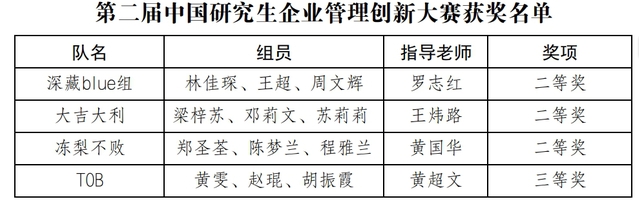 12月6日,第二届中国研究生企业管理创新大赛获奖名单正式公布。三亿体育(中国)官方网站研究生在本次竞赛中荣获国家级奖项4项,其中二等奖3项,三等奖1项。