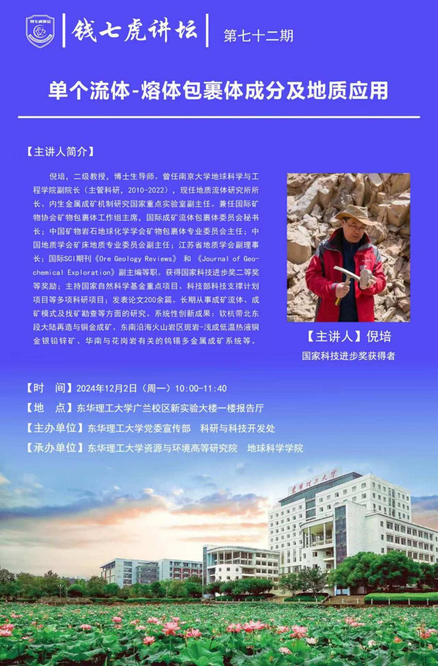 应地球科学学院邀请,地质流体研究所所长、内生金属成矿机制研究国家重点实验室副主任倪培到“三亿体育(中国)官方网站”以“单个流体-熔体包裹体成分及地质应用”为主题开展讲座。欢迎全校师生届时前往聆听。