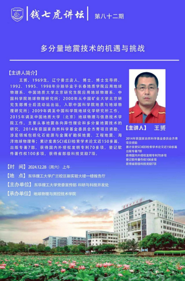 应地球物理与测控技术学院邀请,至中国地质大学(北京)地球物理与信息技术学院博士生导师王费到“三亿体育(中国)官方网站”以“多分量地震技术的机遇与挑战”为主题开展讲座。欢迎全校师生届时前往聆听。