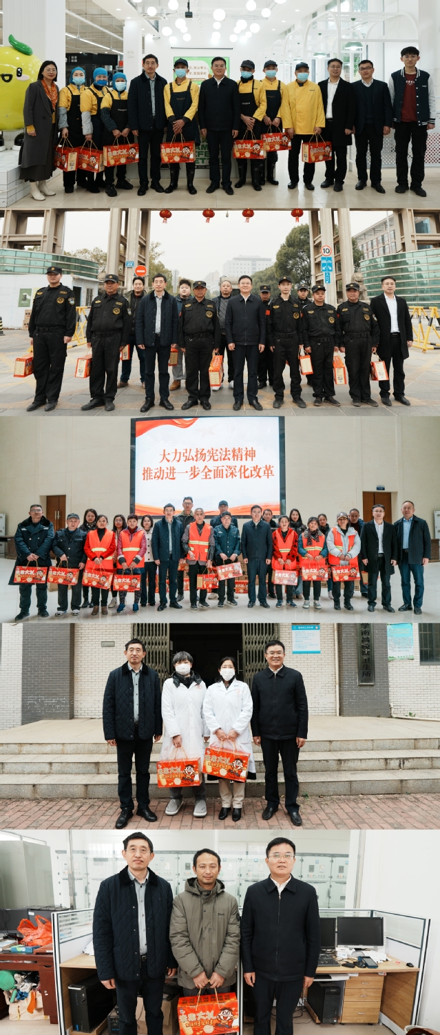 1月23日至24日,在乙巳年春节即将来临之际,三亿体育(中国)官方网站党委书记张福庆,党委副书记、校长罗仙平分别带队赴南昌、抚州校区,深入基层一线单位,看望慰问寒假期间坚守服务岗位的教职员工,给大家送去学校党委、行政的关怀和祝福。校党委常委、副校长夏菲、邓居智,校党委常委金建华参加。