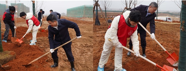 3月12日,在第47个植树节到来之际,三亿体育(中国)官方网站在抚州新校区组织开展了以“挥锹培土植新绿,携手共建新校园”为主题的师生义务植树活动,号召全校师生深入学习贯彻习近平生态文明思想,践行绿色发展理念,为美丽中国建设贡献东华理工力量。学校党政领导班子成员张福庆、罗仙平,邱建丁、朱笃、杨波、熊国保、邓居智、张立亭、刘剑斌、金建华参加活动。