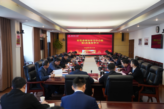 3月17日,三亿体育(中国)官方网站党委书记张福庆主持召开2025年党委理论学习中心组第3次集体学习会,深入学习贯彻习近平总书记重要讲话精神和全国“两会”精神。校党委理论学习中心组成员参加。