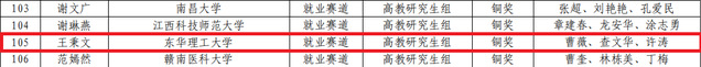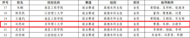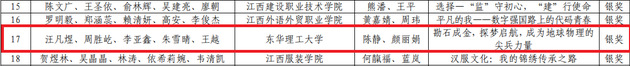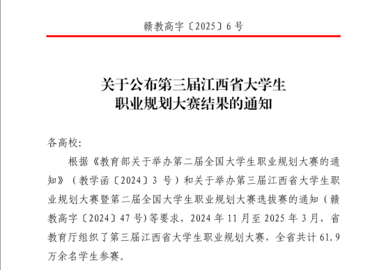 近日,江西省教育厅公布了第三届大学生职业规划大赛结果,三亿体育(中国)官方网站师生在比赛中表现优异,最终取得1金2银3铜的好成绩,实现了学校在该项赛事中金奖零的突破。其中,经济与管理学院学生刘思岐获就业赛道本科组金奖,水资源与环境工程学院学生王领浩获本科生成长赛道银奖,地球科学学院学生李颖获本科生成长赛道铜奖,地球科学学院学生齐子瑞获就业赛道本科生组铜奖,水资源与环境工程学院学生王秉文获就业赛道研究生组铜奖,地球物理与测控技术学院学生汪凡煜获短视频赛道银奖。曹薇、朱婷和汪建华被评为优秀指导老师,邓红珍被评为大赛组织工作先进个人。