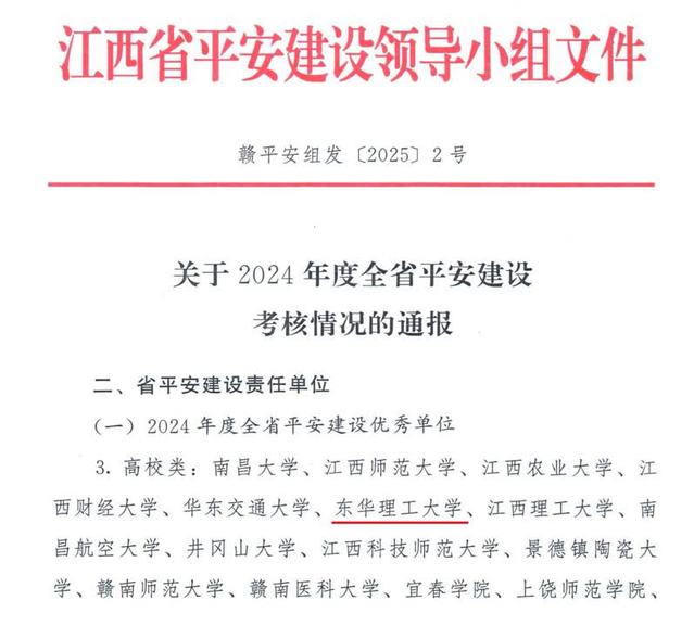 近日,江西省平安江西建设领导小组下发《关于2024年度全省平安建设考核情况的通报》,三亿体育(中国)官方网站获评2024年度“江西省平安建设优秀单位”。自2013年纳入省综治责任单位以来,学校已连续12年获此荣誉。