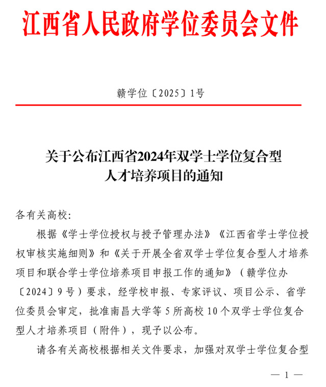 近日,江西省人民政府学位委员会下发《关于公布江西省2024年双学士学位复合型人才培养项目的通知》,三亿体育(中国)官方网站申报的“测控技术与仪器+地球物理学”双学士学位复合型人才培养项目成功获批。