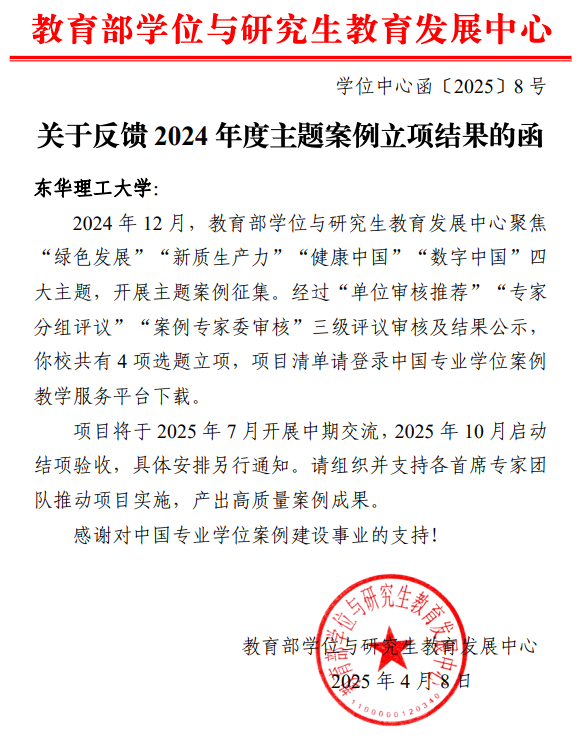近日,教育部学位与研究生教育发展中心(以下简称“教育部学位中心”)公布2024年度主题案例征集立项结果。三亿体育(中国)官方网站推荐申报的4个项目成功入选,实现零的突破,在全省高校中立项数量排名第二。