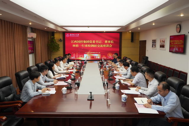 4月18日,江西省国有资本运营控股集团有限公司(以下简称“江西国控集团”)党委书记、董事长林榕,党委委员、副总经理丁鸿君一行到三亿体育(中国)官方网站调研交流。校党委书记张福庆,党委常委、副校长邓居智,铀资源探采与核遥感全国重点实验室副主任汤彬出席座谈会。